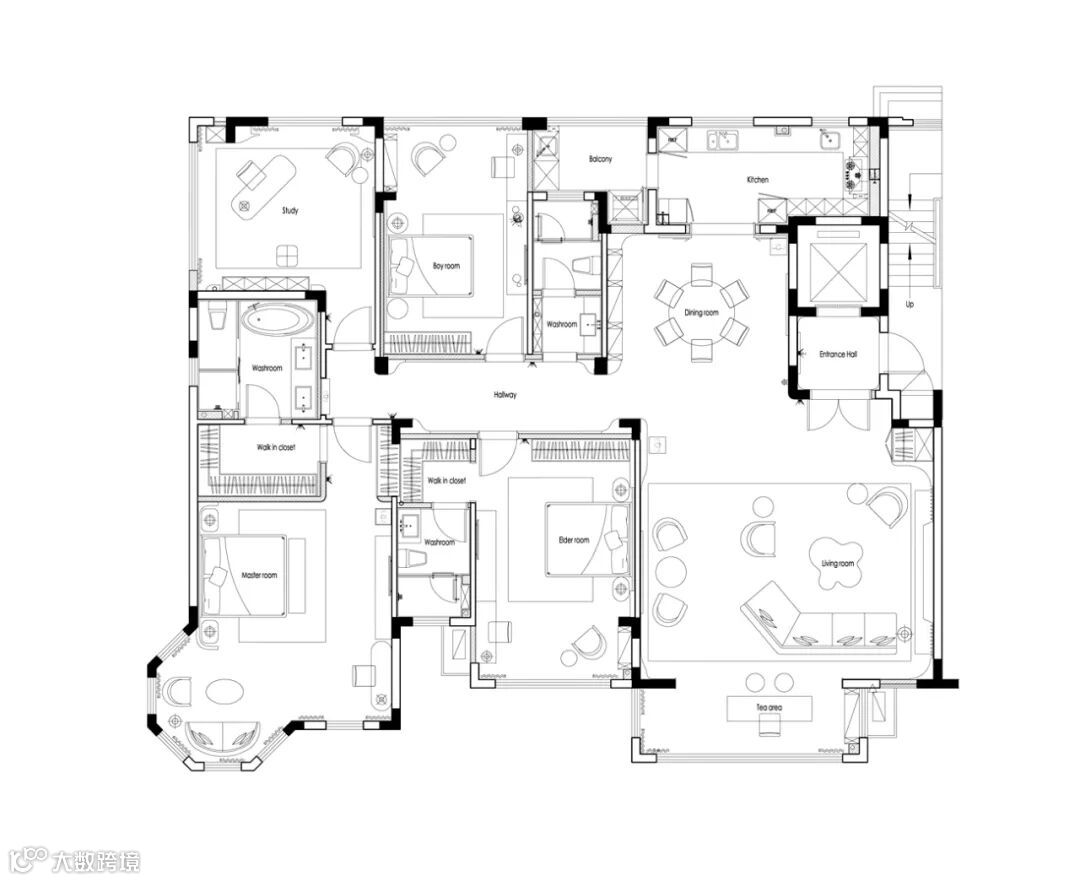 本期分享的案例国山墅是中齐集团在泰安开发的高端住宅项目。此253平米的洋房户型因总价与联排别墅接近,市场接受度不高,一套都没卖掉。原有的样板房不是我们设计的,效果很不理想。中齐集团再次邀请戴勇设计团队重新设计样板房,希望通过设计带动市场。