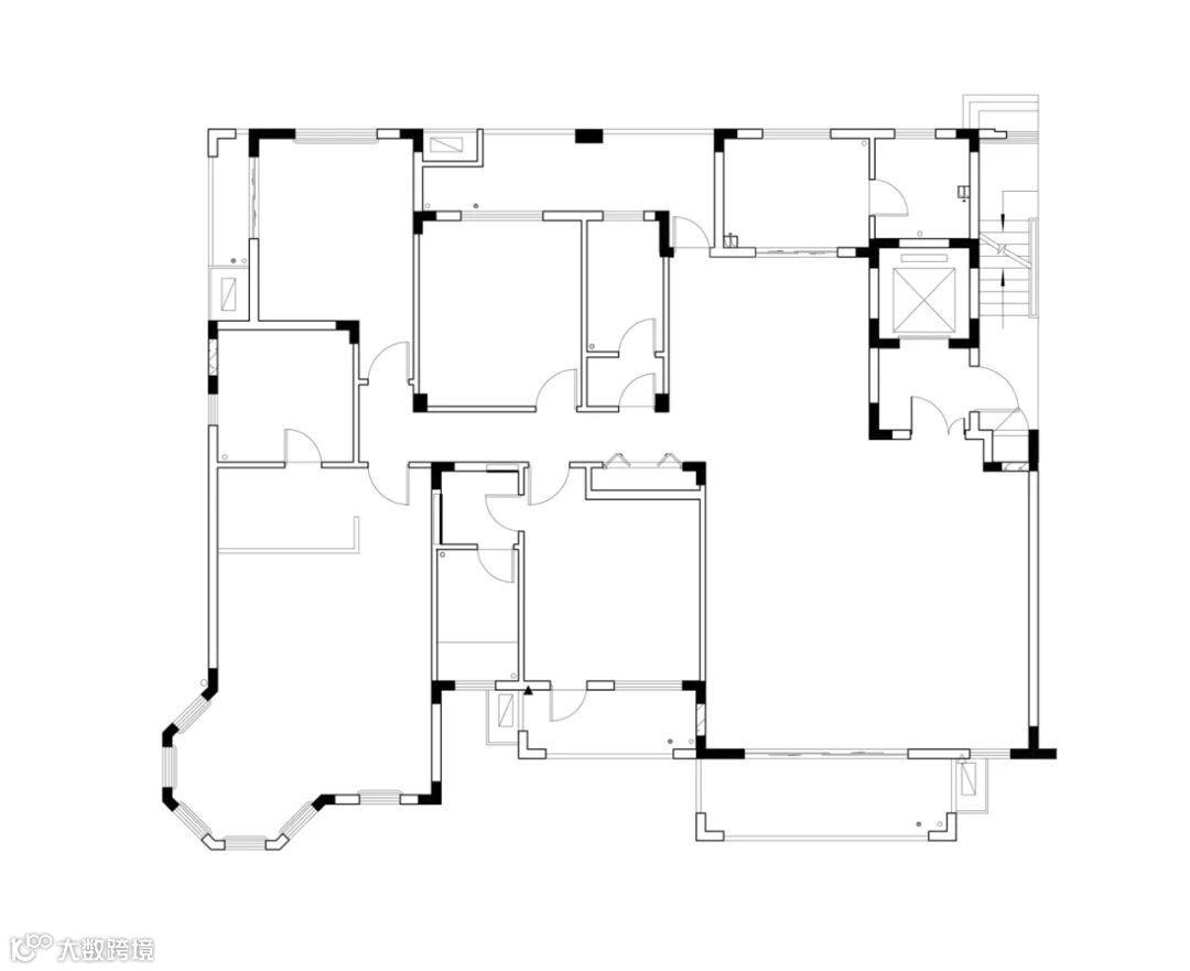 这是原建筑平面图,从原建筑平面看,电梯厅空间局促。户型常规,没有太多亮点。结构柱很多。特别是走廊入口处有两个柱,影响了走廊的宽度,无法体现豪宅的感觉。最核心的问题是,与本项目价格相近的联排别墅相比,毫无卖点可言。