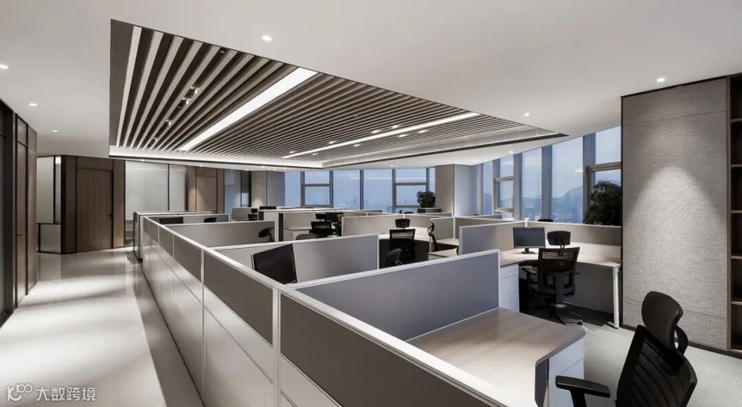 开放办公区去除传统高隔断的开放式设计,最大程度地确保了空间的灵活性和开放度,以满足公司办公和各种员工活动所需。绿色植物造景及盆栽散布在办公区的多个角落,营造出绿色、充满自然气息的办公氛围,意在让员工从紧张的工作状态中暂时脱离出来,体验自然的生机和活力。
