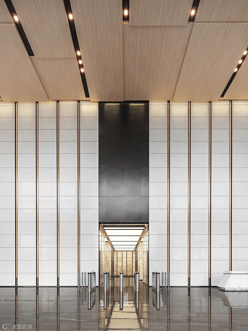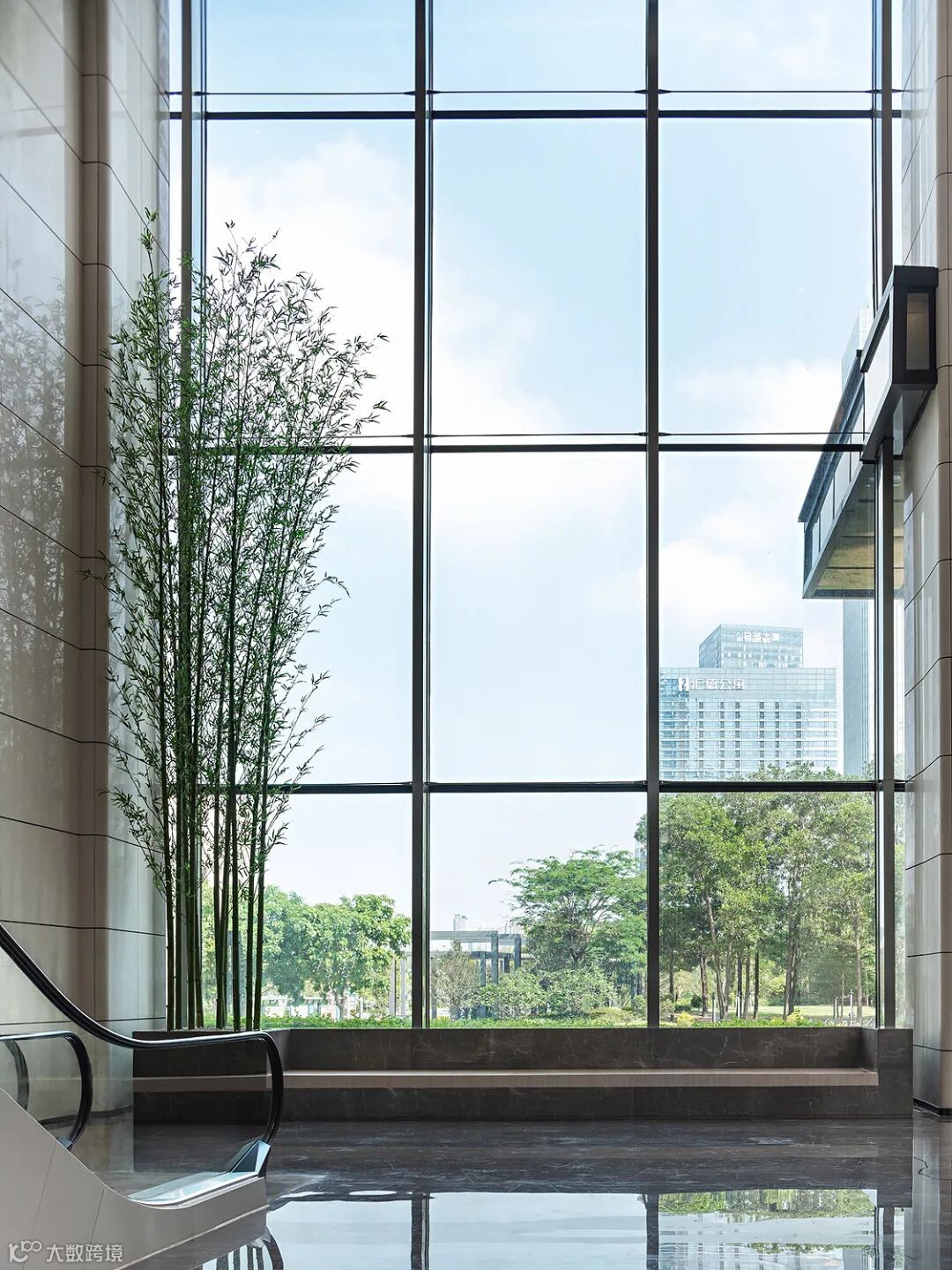 大堂两侧的绿植与窗外的自然景观相呼应,让室内空间充满自然气息,同时,也消除了室内和室外的分界线。设计师运用节制的设计手法,着力营造舒适雅致的空间氛围,井然有序的平面规划,动线清晰,使用效率最大化。