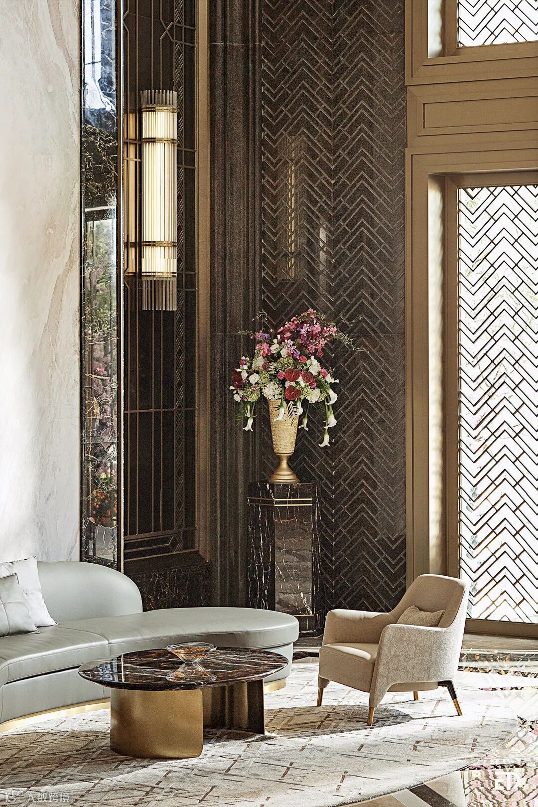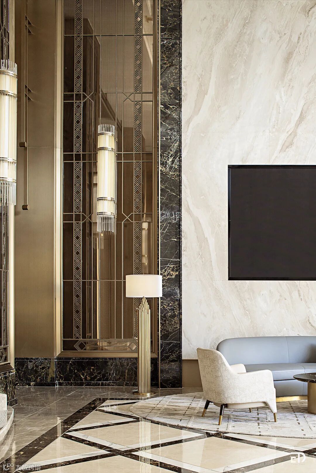 “观门径,可知品”,一座府邸的门厅大堂,不止是归家的仪式,也是身份的体现。深源 · 金紫名邦以东方府门规制礼序和西方经典装饰艺术,从尺度、比例、制式、材质等细节皆沿袭门仪礼制的建筑规格,循门而入,豪宅威仪不彰自显。