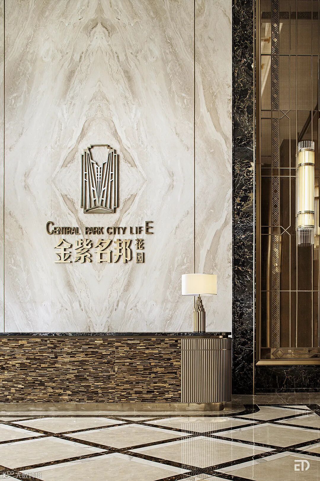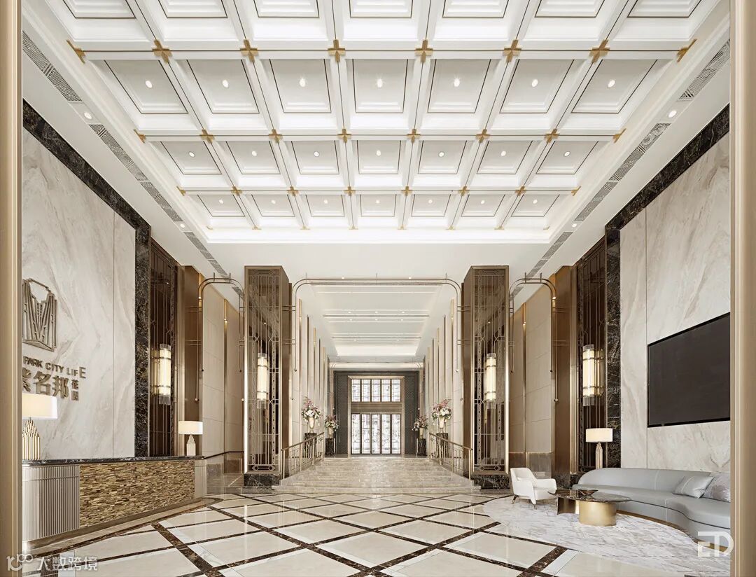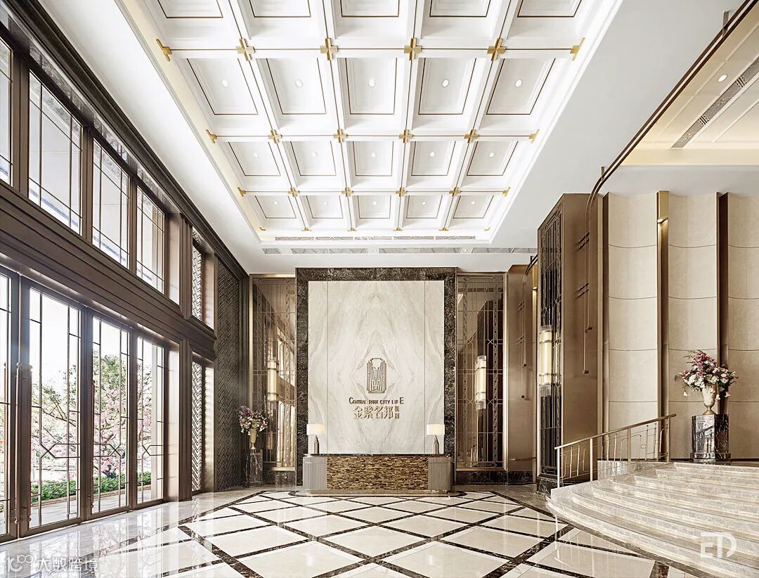 深源 · 金紫名邦花园作为主城中心区稀有的全能百亩大盘,凭借宜居性和稀缺性,多次登上“汕头人气楼盘排行榜”。本案为金紫名邦花园二期的住宅大堂,意在打造汕头高品质住宅居住区的产品标杆。