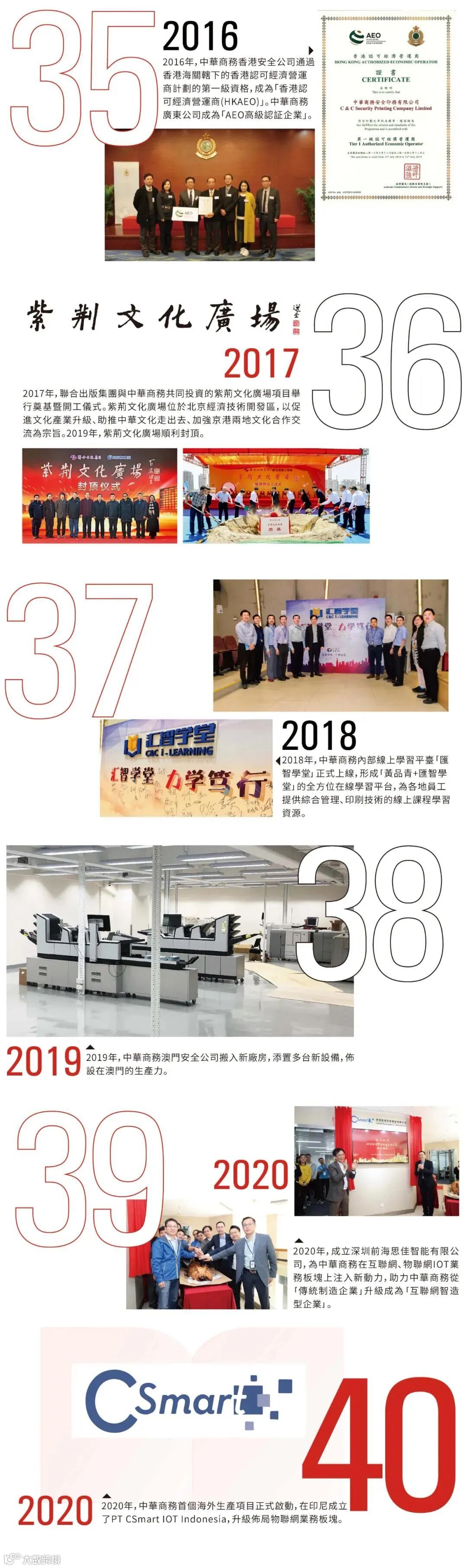 回顧中華商務40年發展歷程,上溯至1924年商務印書館香港印刷廠在西環廠廈設廠、1933年中華書局香港印刷廠在九龍土瓜灣北帝街設廠,中華商務服務香港已近百年。歷經百年,初心不改,自1980年,商務印書館香港印刷廠和中華書局香港印刷廠聯合成立中華商務後,40年來,一代代中華商務人心手相牽,共同書寫了一段曲折向上的發展故事。