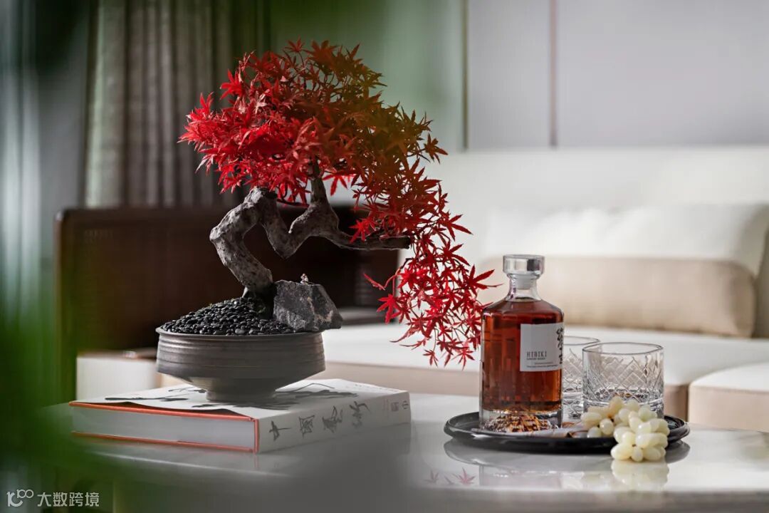 茶几上的红叶如同金秋时节,万山红遍,层林尽染;瓶中翠绿的枝叶,却营造出夏日清晨清新而安逸的意境。色彩之间产生的微妙反差为空间注入了活力。