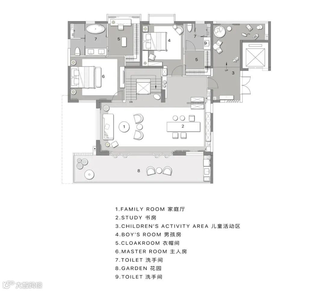 戴勇设计团队一贯的简洁设计给予室内空间充分的灵活性,同时,这种设计思路也让软装产品保持简洁风格,延续了一种可持续和环保的设计思路。三位单位沙发出自丹麦建筑师、设计师OEO的设计。单位休闲椅、餐椅、吧椅、落地灯均出自丹麦建筑师、设计师Space Copenhagen的设计。
