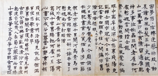 乙卯(1975年)香港嶺南書院展出橫幅(原作為長卷,此橫幅是後半,此四首詩均是丁亥作品) | 圖:《修竹園詩選》
