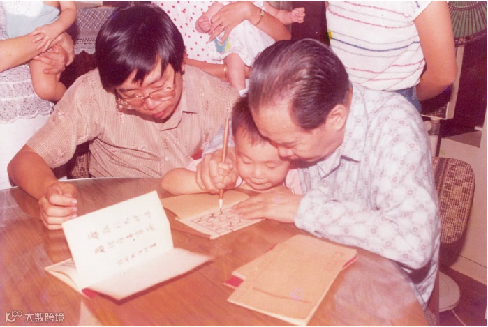 癸亥(1983 年)夏攝於香港太古城寓樓陳湛銓為孫兒貞信開筆 | 圖:《修竹園詩選》
