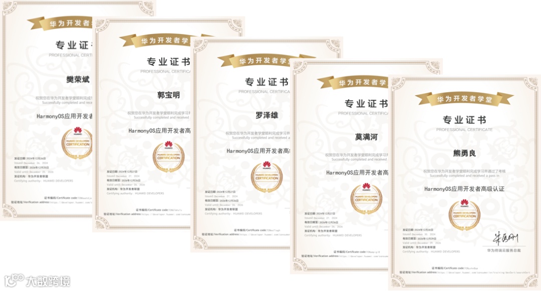 随着物联网与智能终端的快速发展,鸿蒙操作系统以其独特的分布式架构和强大的生态体系,成为企业智慧化转型的理想选择,为国产应用的发展带来了全新机遇。公司积极投入鸿蒙应用开发,组建了一支专业的鸿蒙开发团队,多名员工成功获得HarmonyOS应用开发者高级认证,标志着我们在鸿蒙应用开发领域具备了深厚的技术实力和丰富的实战经验。