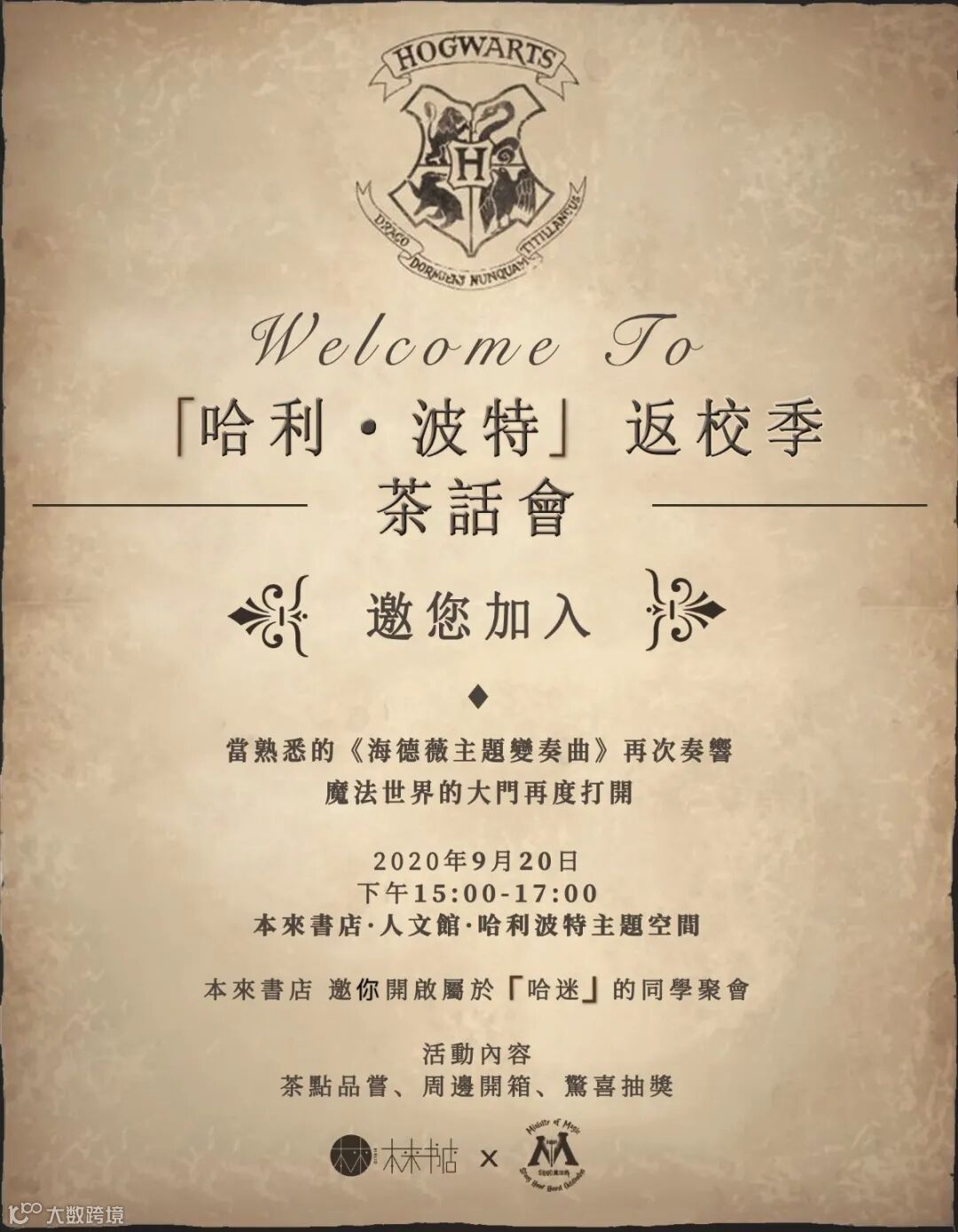參與形式|30元/人(包含茶點、哈利·波特產品8折券)