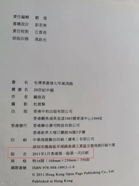 圖| 《毛澤東最後七年風雨路》和《大逃港》第一版封面及版權頁