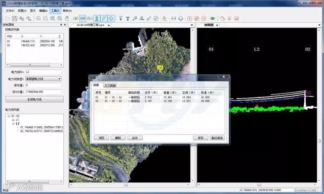 Ugrid树障分析软件是基于图像密集点云匹配和立体测图技术,针对输电线路通道导线弧垂建模、树障安全距离分析、交叉跨越距离测量研发的图像分析软件。