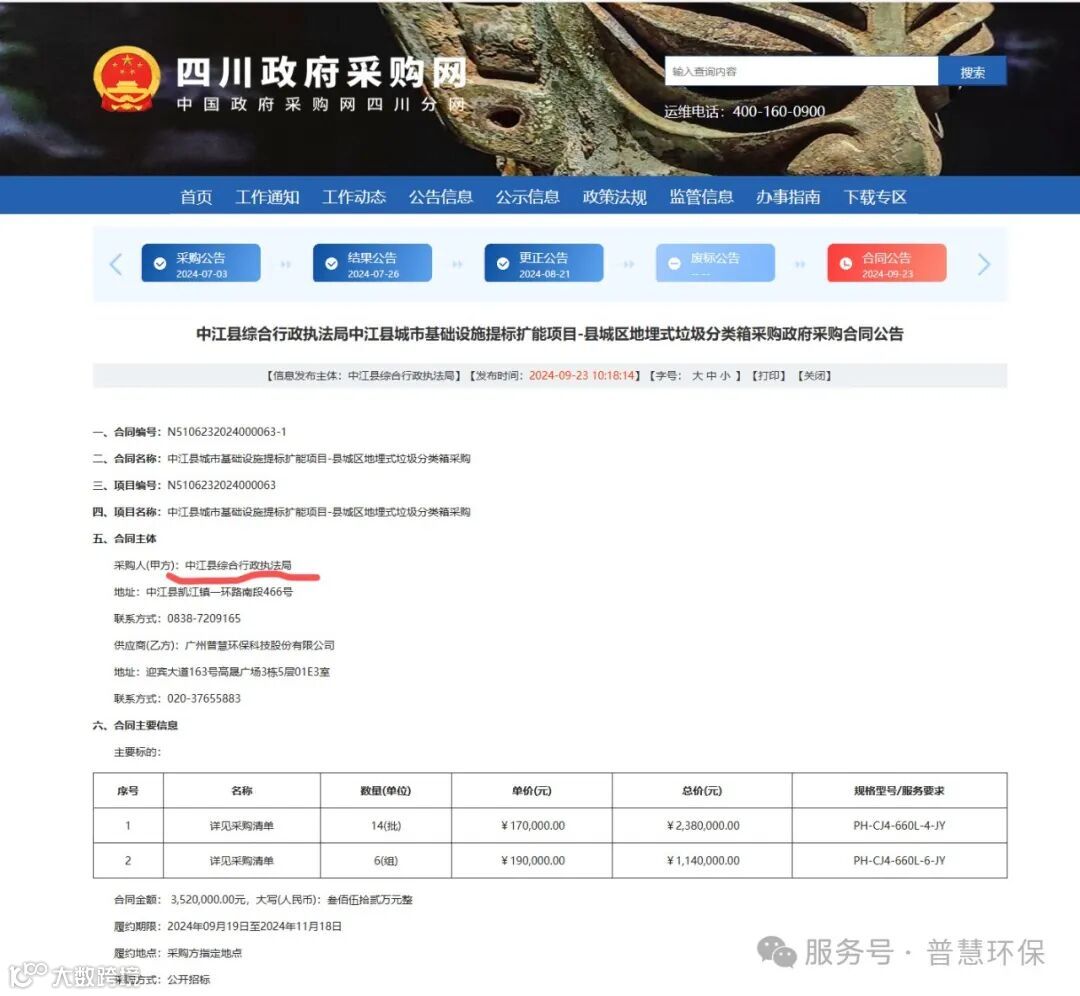 近期,广州普慧环保科技股份有限公司(以下简称“普慧”)中标 四川省德阳政府采购项目,并与地市政府招采部门签署合同,项目涉及公共区域及居民小区的地埋式(景观式)垃圾分类投放站。该项目由德阳市中江城市综合执法部门组织招标。