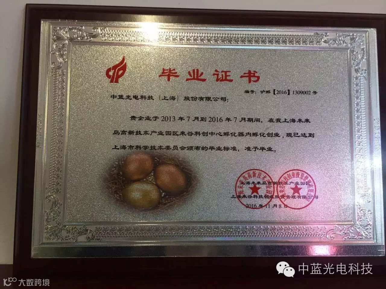2016年7月未来岛园区来谷科创在孵企业中蓝光电科技(上海)股份有限公司达到上海市科学技术委员会颁布的孵化企业毕业标准,顺利毕业。11月22日下午,未来岛园区总经理钱世嵘及副总经理葛霞芳莅临公司,并颁发了孵化企业毕业证书。