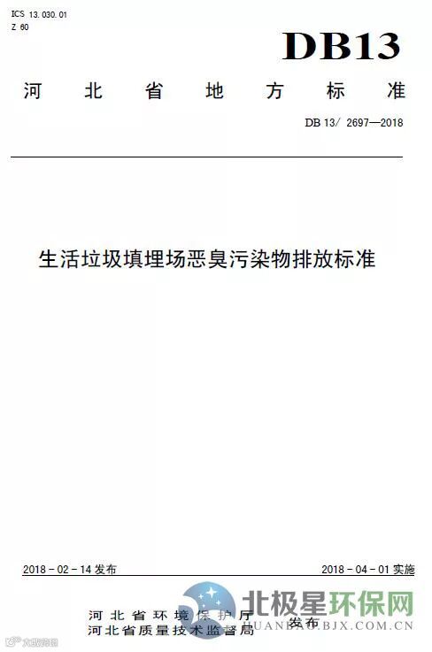 本标准规定了生活垃圾填埋场恶臭污染物排放控制、污染防治措施、污染物排放监测、实施与监督等要求。