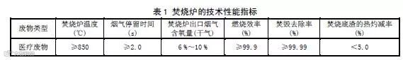 4.3.1医疗废物焚烧炉的技术性能指标应满足表1的要求。