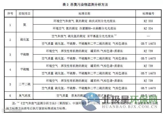 6.7恶臭污染物浓度的测定按表3中所列的方法标准执行。