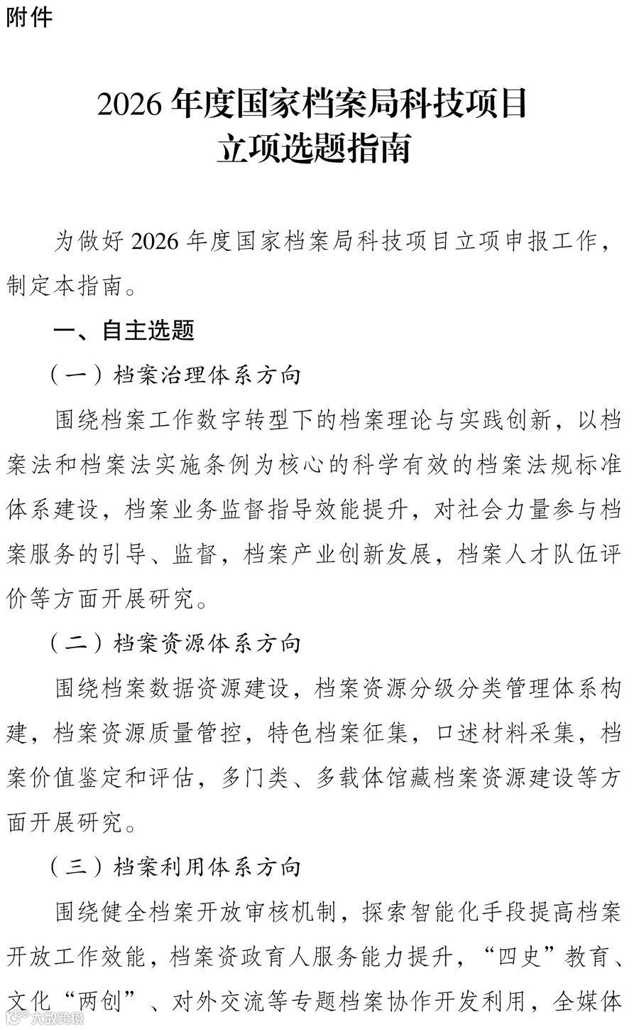 附件:2026年度国家档案局科技项目立项选题指南