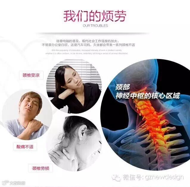 但现在随着电脑普及,社会工作强度的加大,不管是办公 室白领,还是汽车司机,久坐都会带来一系列颈椎不 适,很容易产生颈椎受凉、酸痛不适、颈椎劳损。