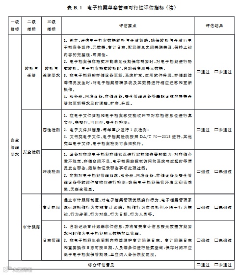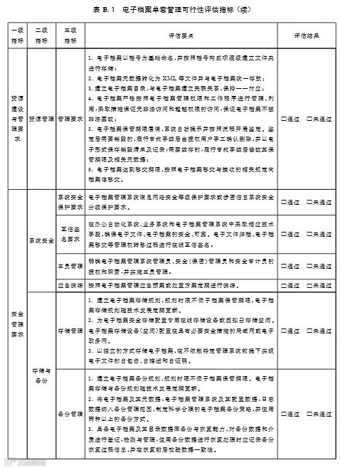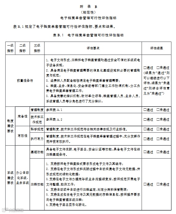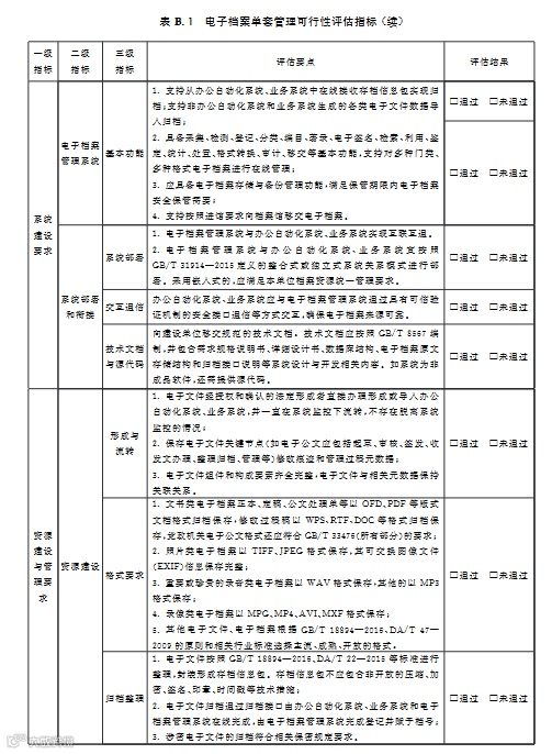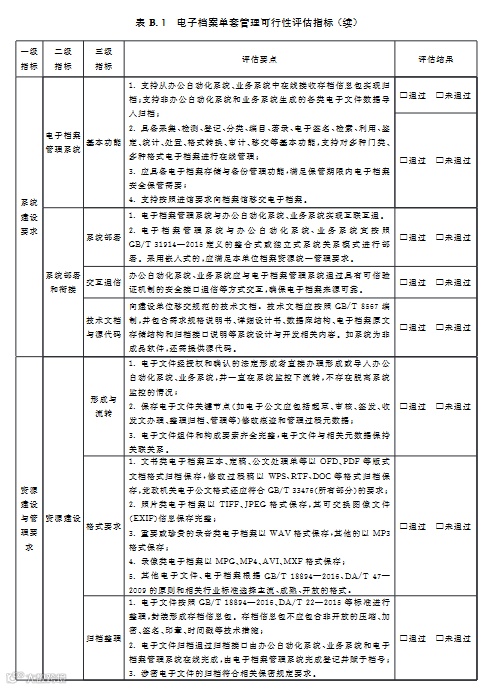 评估指标所有三级指标评估结果为“通过”视为通过可行性评估,可开展电子档案单套管理。