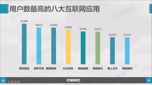 银河酷娱中国互联网络信息中心(CNNIC)今日发布《第37次中国互联网络发展状况统计报告》。截至2015年12月,中国网民规模达6.88亿,互联网普及率为50.3%。其中手机网民规模达6.2亿,网民中使用手机上网人群占比由2014年的85.8%提升至90.1%。