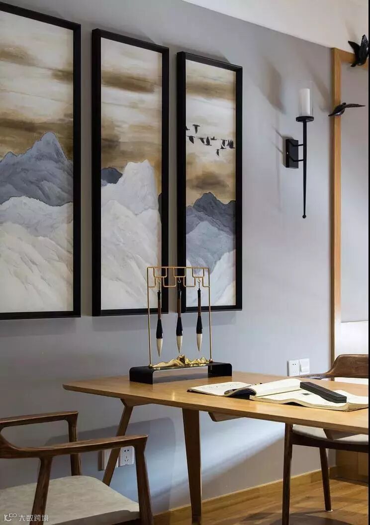 佛系雅居,简约却不简单。安逸亲和,却满细致灵动的艺术气息。室内的布置非常的清简,大量的留白,更显清简舒适。结合传统绘画白描黑色线条的应用,即可以将界、面形成对比,又可以保护边角不受到损坏,巧妙的把“自在自如”贯穿于空间中。