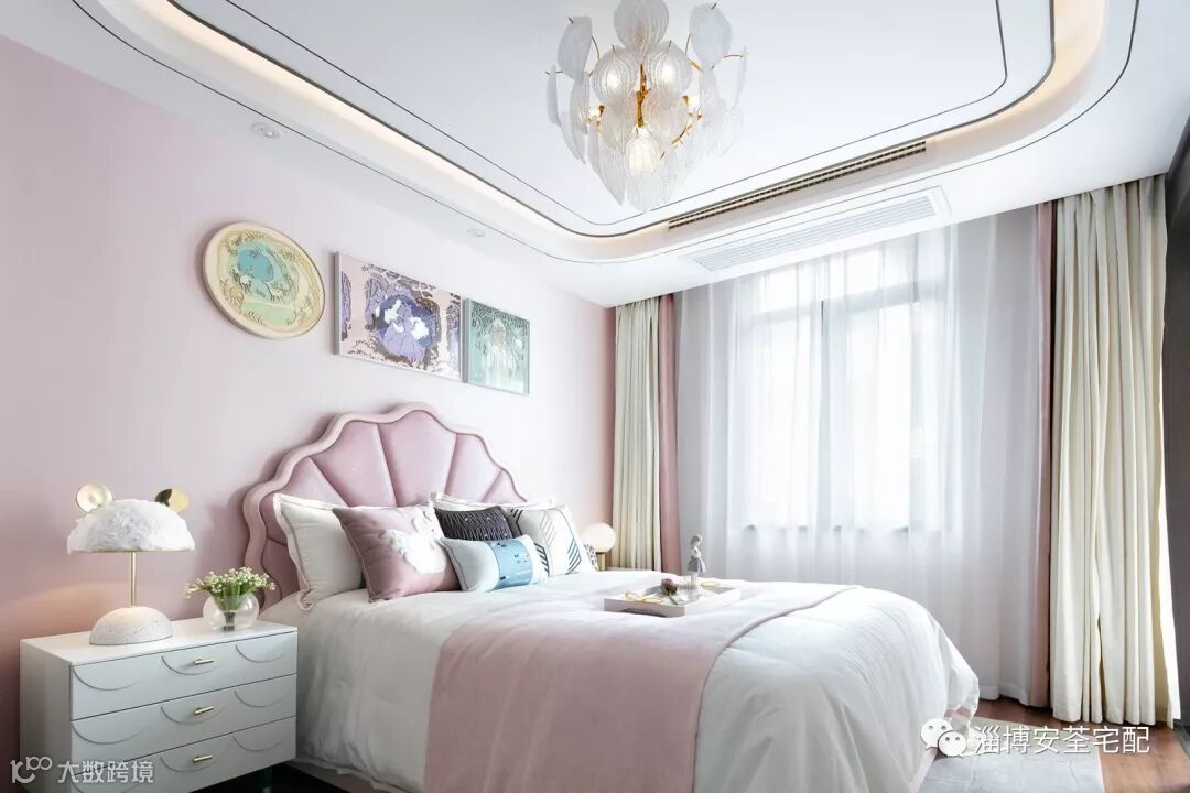 淡粉色的公主房,甜美又不失坚强,不管是贝壳造型的床背,还是白雪公主主题的挂画,每一种都在宣示着小公主可爱的领地。