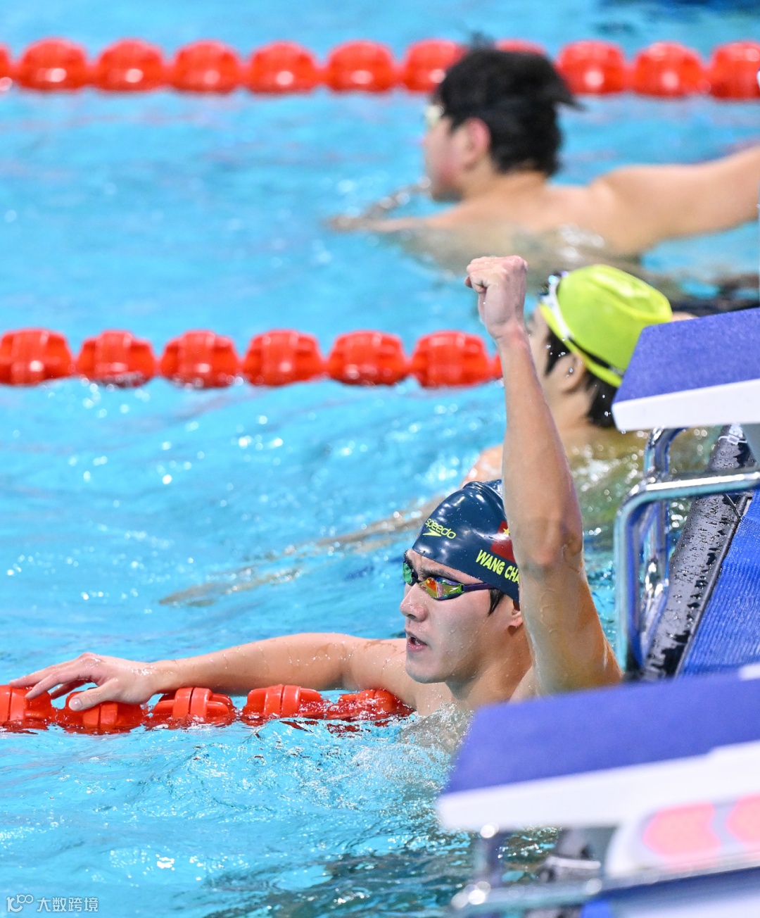 男子50米蝶泳赛场,天津选手王长浩以23.30秒夺冠;山东选手徐放以23.45秒摘银;浙江选手沈加豪获得铜牌。