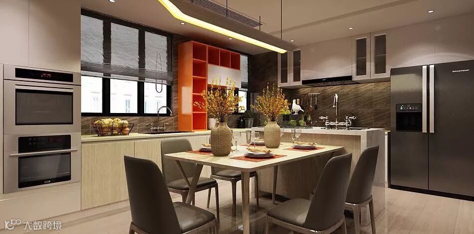 橱柜的高度可以依据房主的身高来定,柜深一般在30到35厘米,上下柜之间的距离为80厘米,方便存取物品。