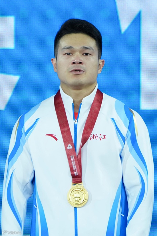 华奥星空东莞11月17日电(记者 寿天峰)17日晚,第十五届全运会举重男子73公斤级决赛在东莞石龙中学体育馆上演,代表浙江队出战的东京奥运会冠军石智勇以抓举161公斤、挺举185公斤,总成绩346公斤实现全运会三连冠。赛后石智勇泪洒颁奖仪式并宣布退役,结束22年举重生涯。