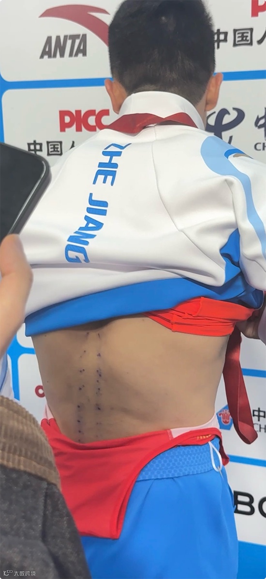 过去几年,石智勇始终与伤病缠斗,这背后是常人难知的艰辛。背伤、腰伤反复侵袭,如今脊柱的伤病更成了顽疾,导致身体无法承受所需要的力量。“每一个点都代表一个针刀。”他向记者展示背部密密麻麻的治疗针孔,“每天都要经历这些,真的很难受。”曾经可以轻松完成的重量,如今成了尽全力也难以逾越的关卡。“举完我就知道,是时候结束了,翻转都起不来,心里很难受。”赛后采访中,石智勇坦诚道出内心的无奈,“我想证明自己没老,但事实是伤病已经不允许我继续作战了。抓举可以靠技术赢,但挺举需要力量,我现在力量根本起不来。”