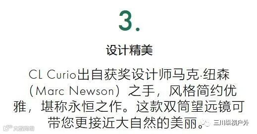 CL Curio是其产品系列中最轻便、最紧凑的双筒望远镜,出自获奖设计师马克·纽森之手——Expect the unexpected。
