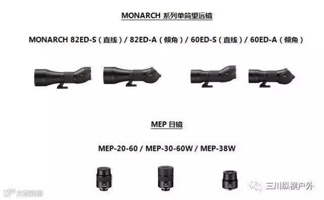 尼康公司MONARCH系列单筒望远镜82ED、60ED系列,其中包括4款单筒望远镜镜身和3款目镜。(*目前剩余部分库存,请咨询*)