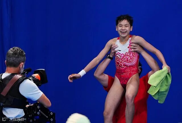 当看到大屏幕上显示自己是冠军后,全红婵的主管教练刘犇一把抱起了弟子,把她举得高高的,庆祝胜利,她当时的表情还有些茫然。“我还没有觉得什么,就是教练抱得有点疼。”