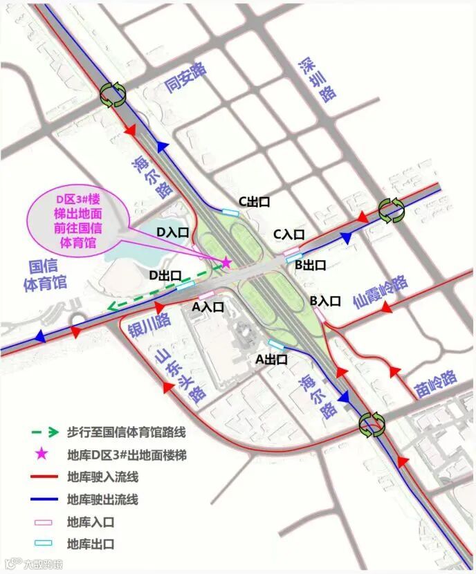 北向:停车场C出口→海尔路