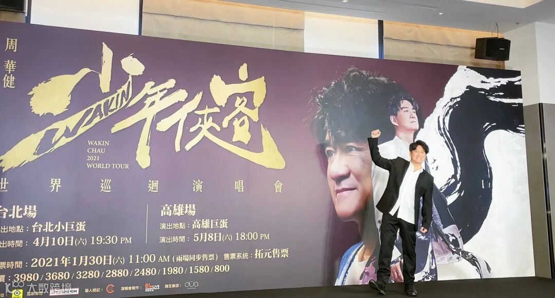2021周华健全新巡回演唱会《少年侠客》演唱会北高两场将于1月30(周六)早上11:00吉日吉时于拓元售票系统同步开卖,今天记者会最后主办单位特别准备一个“题字成金”挥毫开卖仪式,要请华健哥当众挥毫,以黑色毛笔字写下“否极泰来牛运到”七个字,希望藉着“题字成金”来让开票当天有好兆头,演唱会票房大卖秒杀!值得一提的是,睽违五年宣布开唱的周华健遇到疫情严峻时刻,被主持人黄子佼问到担不担心票房及往后可能的会发生的变量挑战?周华健特别表示:“去年此时我其实就开始停止演出的工作,这一年其实很少有机会在公开场合唱歌,不过这是我一辈子的工作,我如果不唱歌,其实全身都会‘很痒’,唱歌事业突然停滞,会很不舒服!”至于很多人关心周华健担不担心疫情影响演唱会?周华健表示:“不担心!我对台湾防疫很有信心,也对有关单位很有信心,桃园目前告急反而是好事,越紧张大家其实就会越关注不敢掉以轻心,因为疏忽就会破一个洞!至于演唱会部份,我相信如果遇到问题,主办方会做出最好的判断,而我则期许自己把歌唱好,希望藉着歌给大家安定及安慰的力量!所以我不担心往后的挑战,希望把一切准备到最好状态,然后全力以赴!”