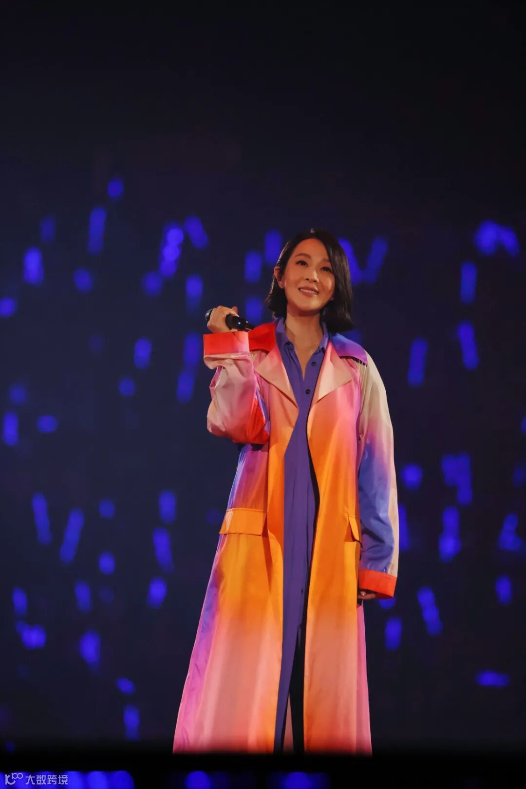 有别于前段的摇滚氛围,刘若英转眼间踏上追寻梦幻星辰之路,演唱到《原来你也在这里》时,她站上“环环相扣极光天台”缓缓升空,与宝蓝色莫比斯双环LED灯交织融合,犹如在银河夜空高歌,美得令人目不转睛。
