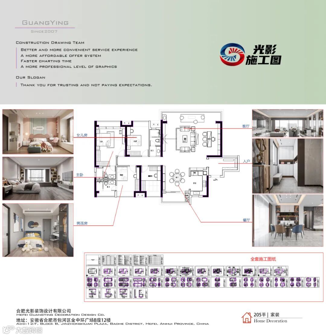 光影设计成立于2007年,总部位于合肥,是国内装饰视觉设计效果图行业的领军企业。主营室内外效果图、360全景、施工图等,专业服务于全国装饰装潢公司、设计公司、设计院等范围的设计师群体。效果图100元即可制作。官网:www.hfgysj.cn