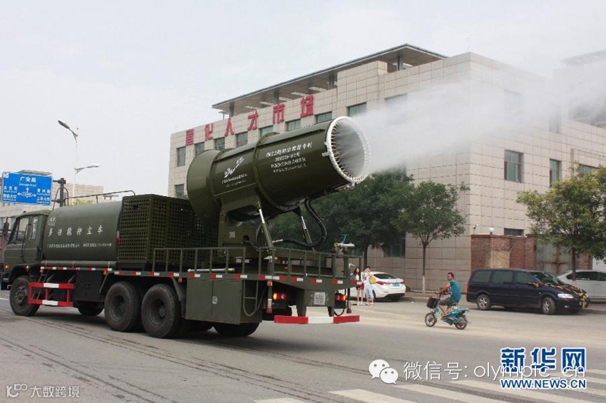 日前,京张正式成为2022冬奥会候选城市,至此,北京、张家口也开启了冬奥会筹备之路。环境问题,一度成为京张申办冬奥会的软肋。为了改变雾霾环境,河北省张家口市率先向雾霾开炮,首台被称为“雾炮”的多功能抑尘车在张家口市宣化区正式上岗。该多功能抑尘车携带可向空中发射水雾的喷洒系统,能够将水雾喷洒100米远、60米高,达到快速抑制灰尘的目的。