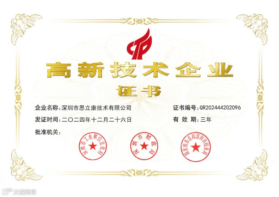 在科技创新的征程中,每一步前行都凝聚着无数的努力与付出。思立康成功获得了高新技术企业证书!