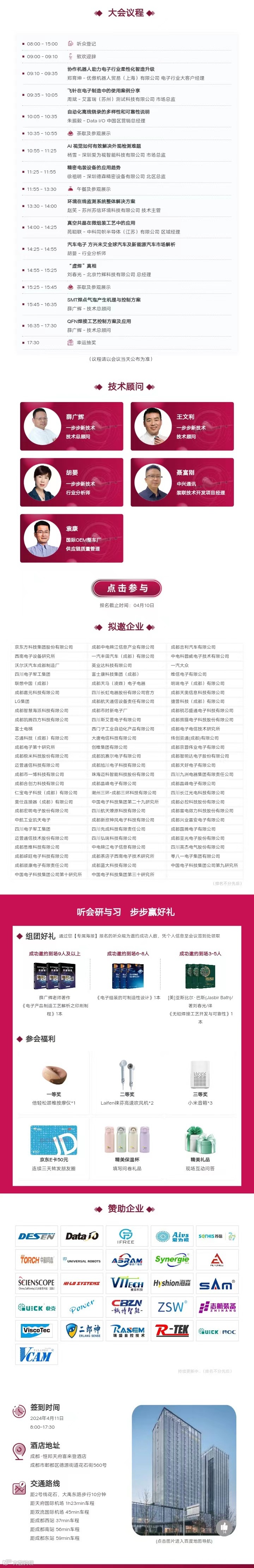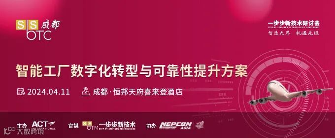 一步步新技术研讨会将于2024年4月11日在成都·恒邦天府喜来登酒店举办“智能工厂数字化转型与可靠性提升方案”专场,旨在推动西南地区电子制造产业发展,凝聚国内外一流的智能制造资源,促进交流、建立与国际接轨的智能制造产业服务平台。