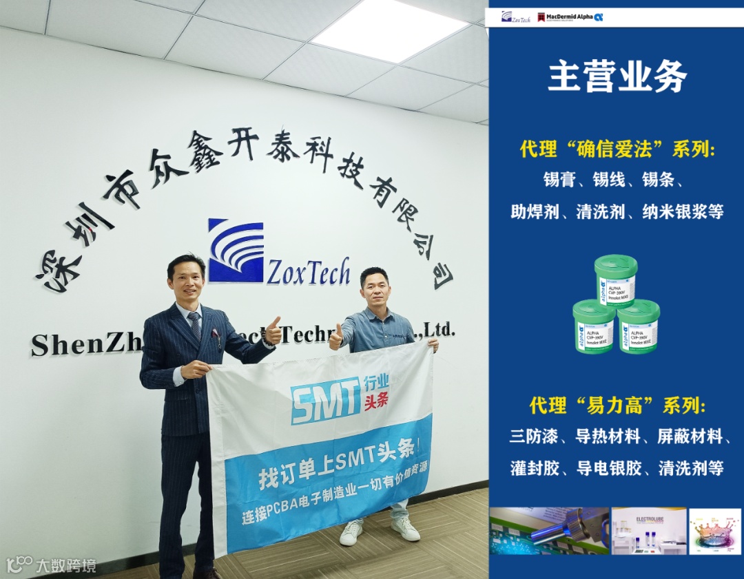 公司主要致力于电子辅料(锡膏、助焊剂、锡条、锡线、清洗剂)和电子胶黏剂(Underfill、Edgebond、封装胶、贴片红胶、摄像头模组胶)、三防漆、灌封胶、导热材料(导热硅脂、导热凝胶、导热垫片)、半导体材料(银胶、银膜、纳米银浆)等销售及解决方案提供。