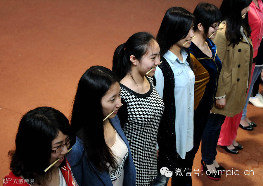 【青奥会礼仪小姐聚集南京体院 咬筷子练笑容】