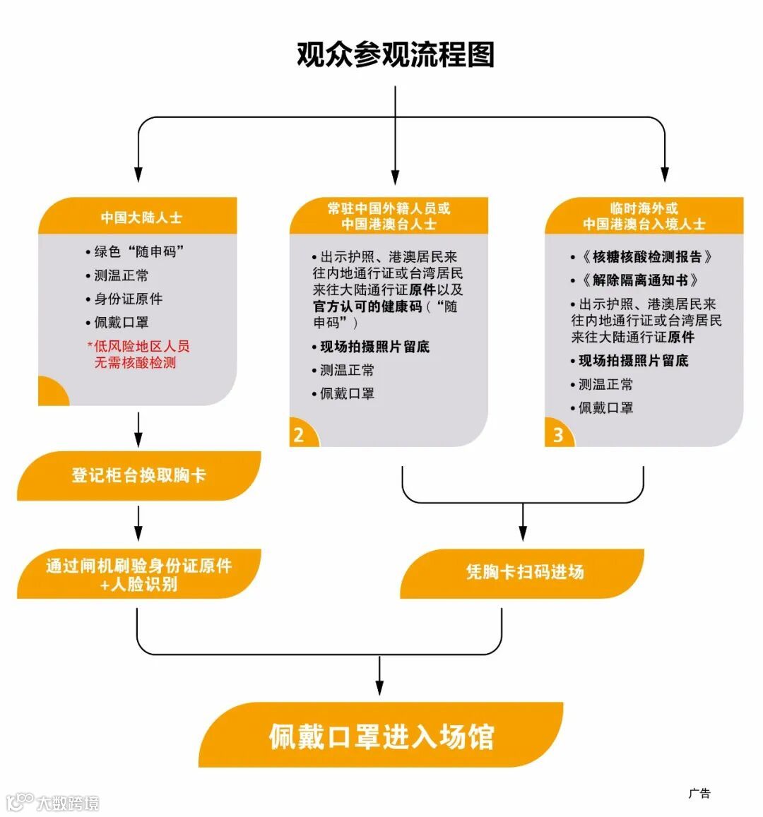 👉 须提供有效的《核糖核酸检测报告》和《解除隔离通知书》,测温正常、佩戴口罩并出示护照、港澳居民来往内地通行证或台湾居民来往大陆通行证原件,拍摄照片留底后方可入场。