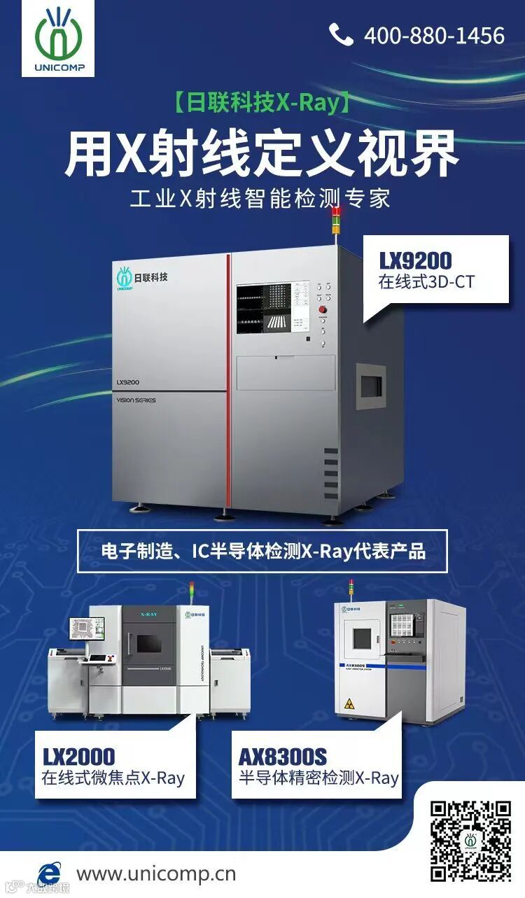 日联科技电子半导体检测设备主要应用于检测BGA、IGBT、Flip Chip等IC芯片半导体以及PCBA元器件焊接、LED、光伏等行业的高精密检测。根据应用场景配备(离线式)标准化和(在线式)自动化设备,满足客户针对2D、3D成像的不同检测需求。