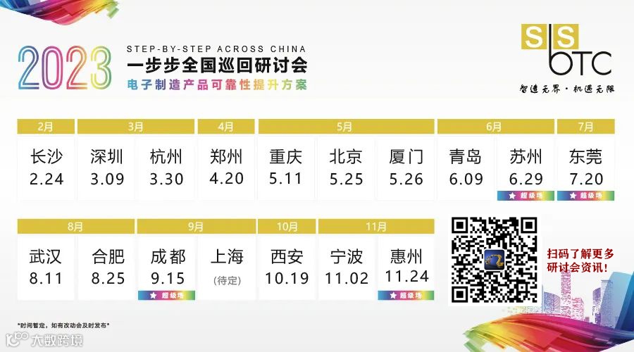 SbSTC一步步新技术研讨会是专注搭建全球范围内信息交流和贸促平台的SMT专业盛会,自2012年以来全国巡回,已在北京、重庆、郑州、合肥、惠州、深圳、东莞、佛山、苏州、杭州、成都、武汉、南昌等城市办会,服务行业客户超过万人,其中国际国内知名企业200余家。