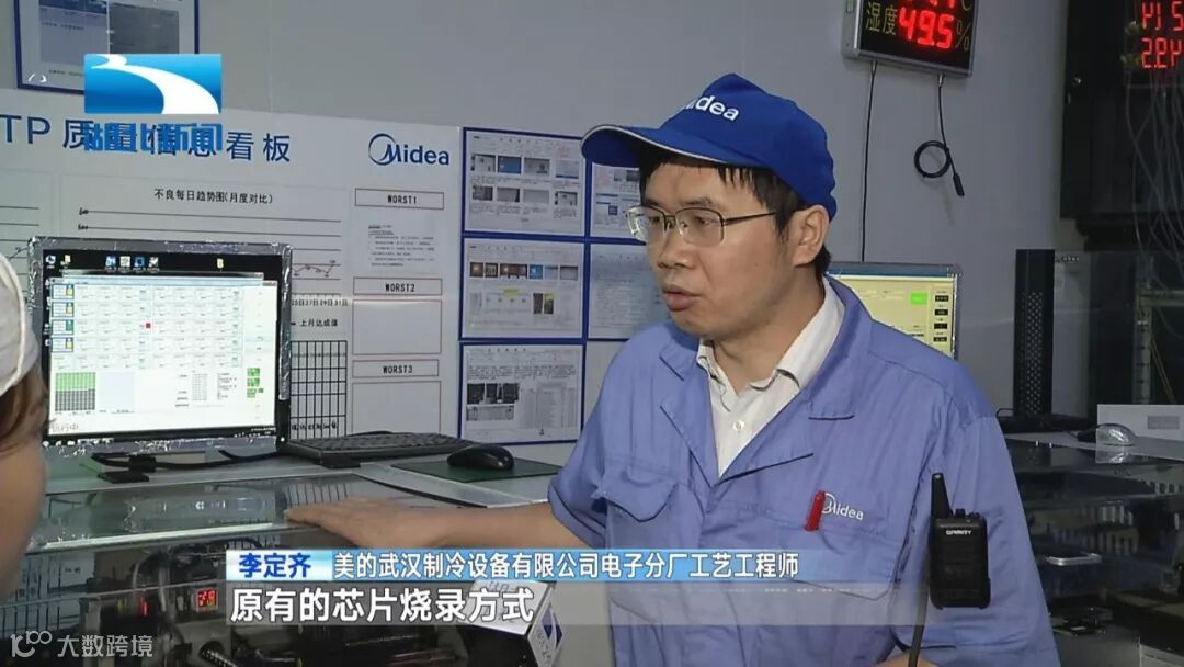 美的武汉制冷设备有限公司电子分厂工艺工程师 李定齐:原有的芯片烧录方式,作业时间至少要提前8小时。在线烧录,这8小时就完全去掉了,可以实现160款程序的兼容。