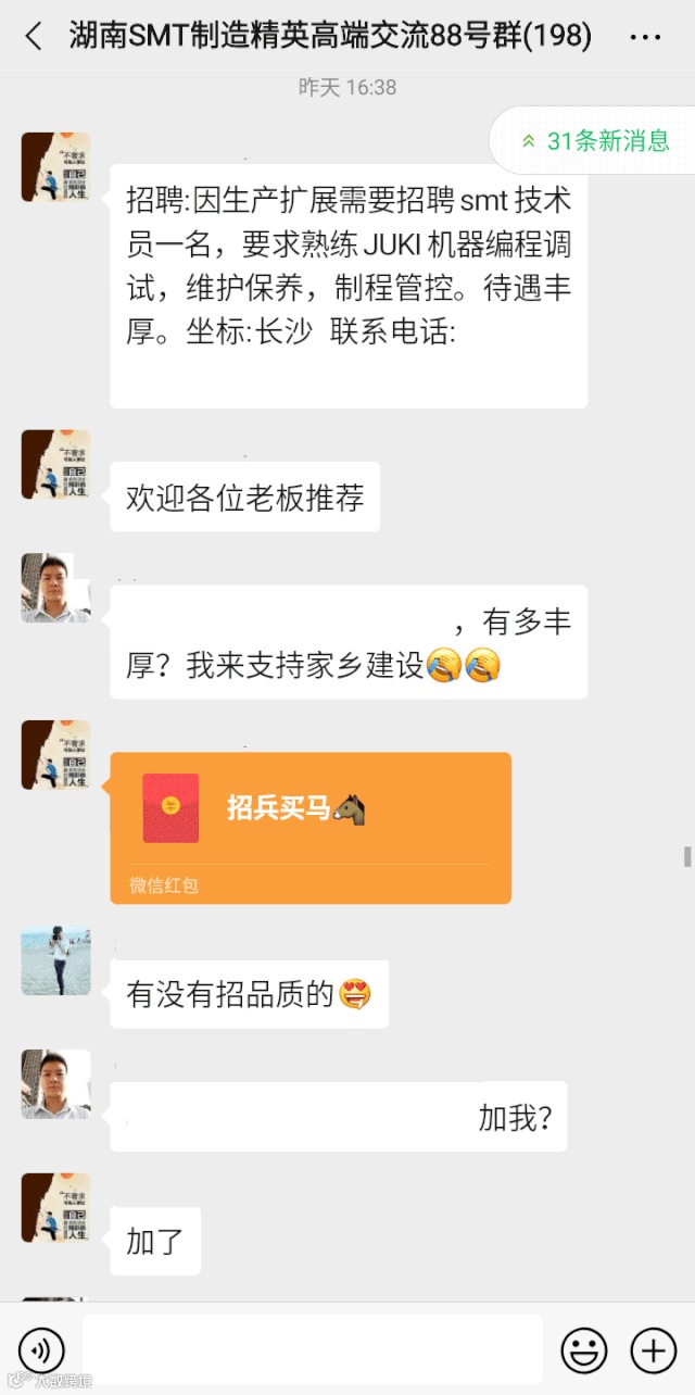 想进“SMT制造老乡精英交流群”的SMT朋友,请加以下群管理员微信号(Chinasmt688),先留言“我想进SMT老乡精英群”文字,然后提供下本人名片或工作厂牌,经核实是SMT行业人士,即可邀请进群,感谢您的大力支持与信赖!非SMT行业朋友请莫要打扰,谢谢合作! ☺☺