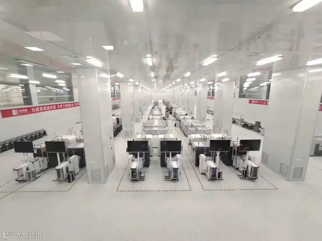 进入生产车间前,需要先更换专业的防静电服,佩戴防静电帽和鞋套,通过ESD释放静电,再经过吹淋室进行360度除尘,以免将身上的灰尘和静电带进车间,影响手机的性能。这个车间,主要生产手机核心部件——主板,基本都是由智能设备完成。