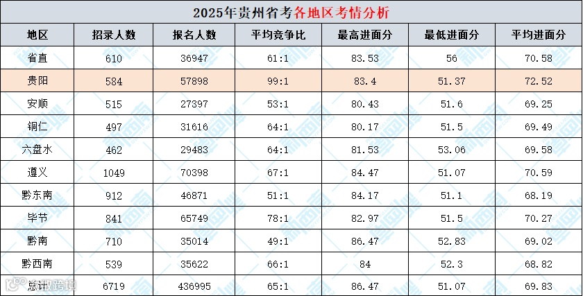贵阳市的省考竞争激烈程度远超其他地区