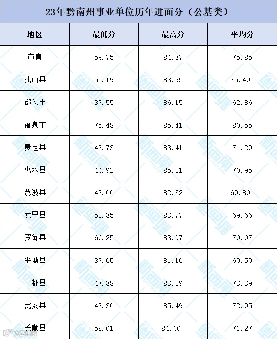 ● 黔南州地区历年进面分及题型分析: